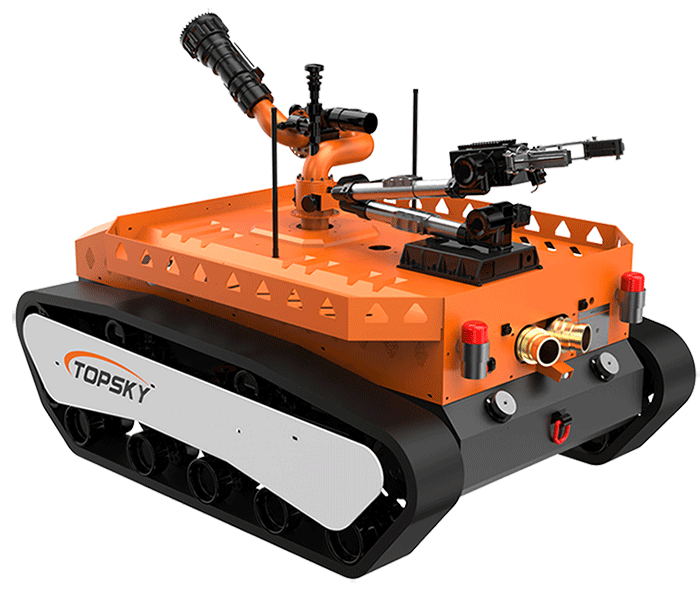 履帶式防爆機器人底盤采用鋰電池電源作為動力源,使用無線遙控的方式遠距離操控,裝載7自由度排爆機械手能實現不同角度旋轉,機械臂可裝載爆炸物銷毀器,可現場摧毀爆炸物,采用履帶+單擺臂結構,能適應各種地形快速作戰部署。
