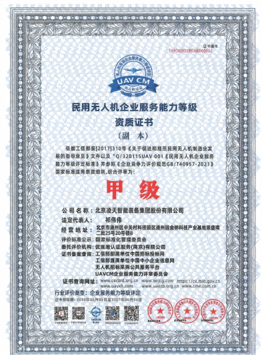資格類(lèi)民用無(wú)人機(jī)企業(yè)服務(wù)能力等級(jí)資質(zhì)證書(shū)(甲級(jí))